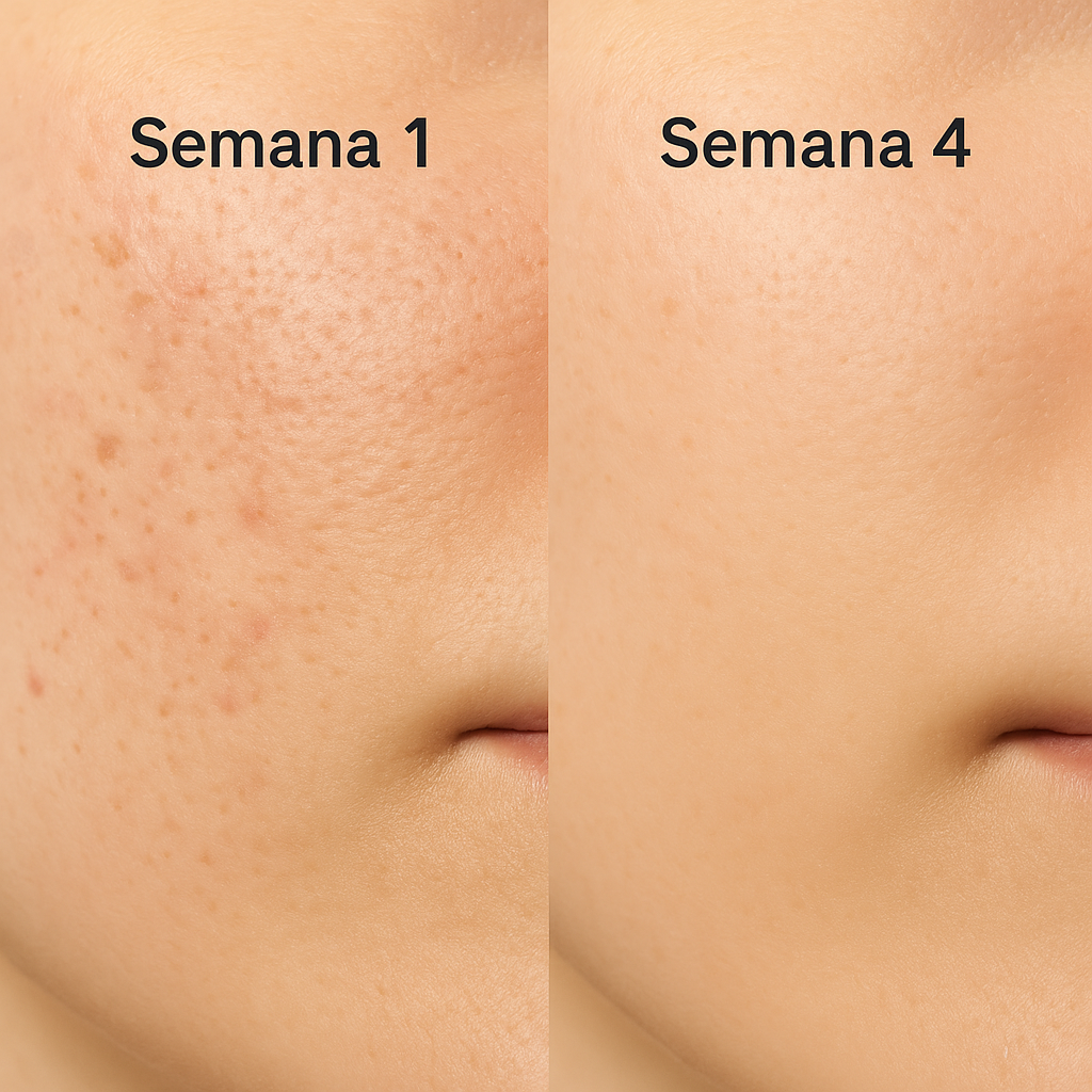 Los primeros resultados pueden verse desde la primera semana de uso constante, con una piel más luminosa, hidratada y con mejor textura.