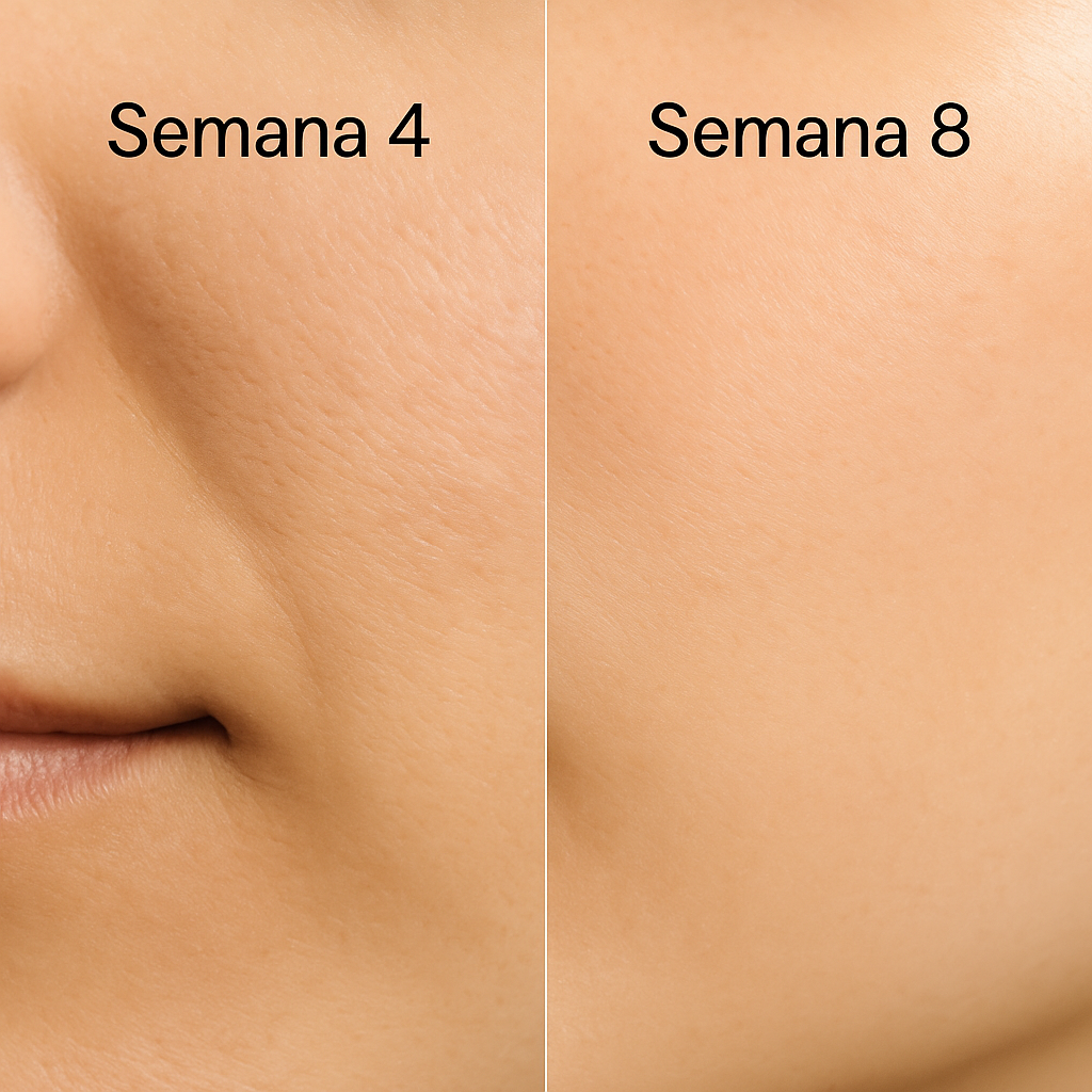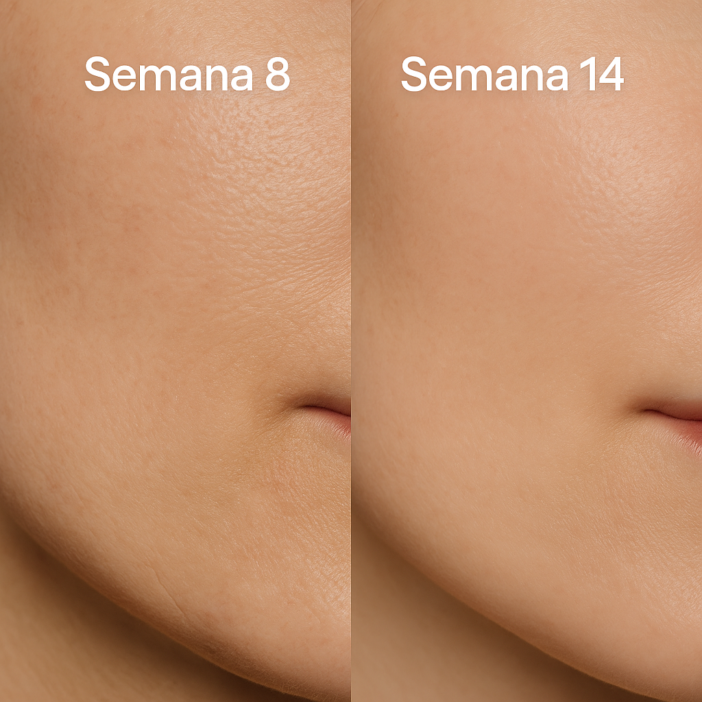 En solo 8 semanas, la firmeza y la luminosidad natural comienzan a notarse en cada detalle.